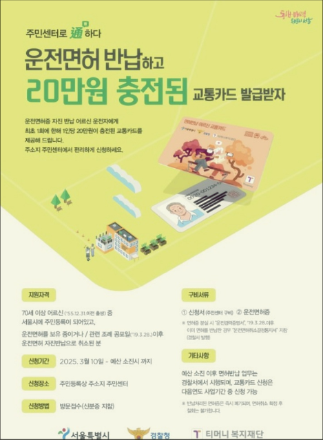 서울시 고령 운전자 운전면허 반납 지원금 68만원 신청 방법