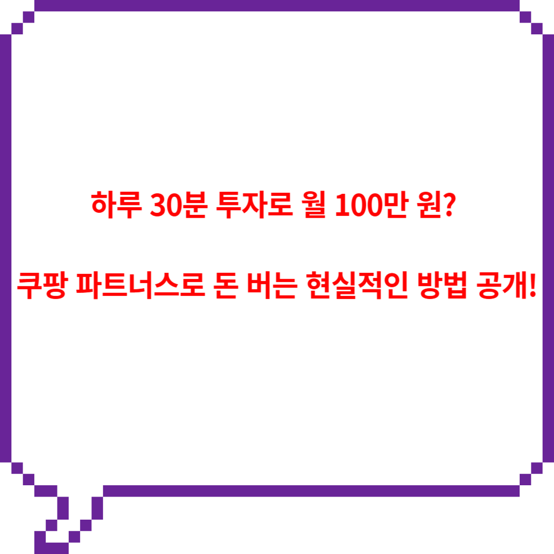 쿠팡 파트너스 완벽 가이드 - 하루 30분 투자로 수익 창출하기