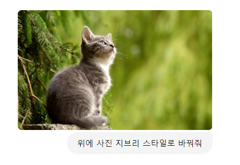 - "이 사진을 지브리 스타일로 바꿔줘"