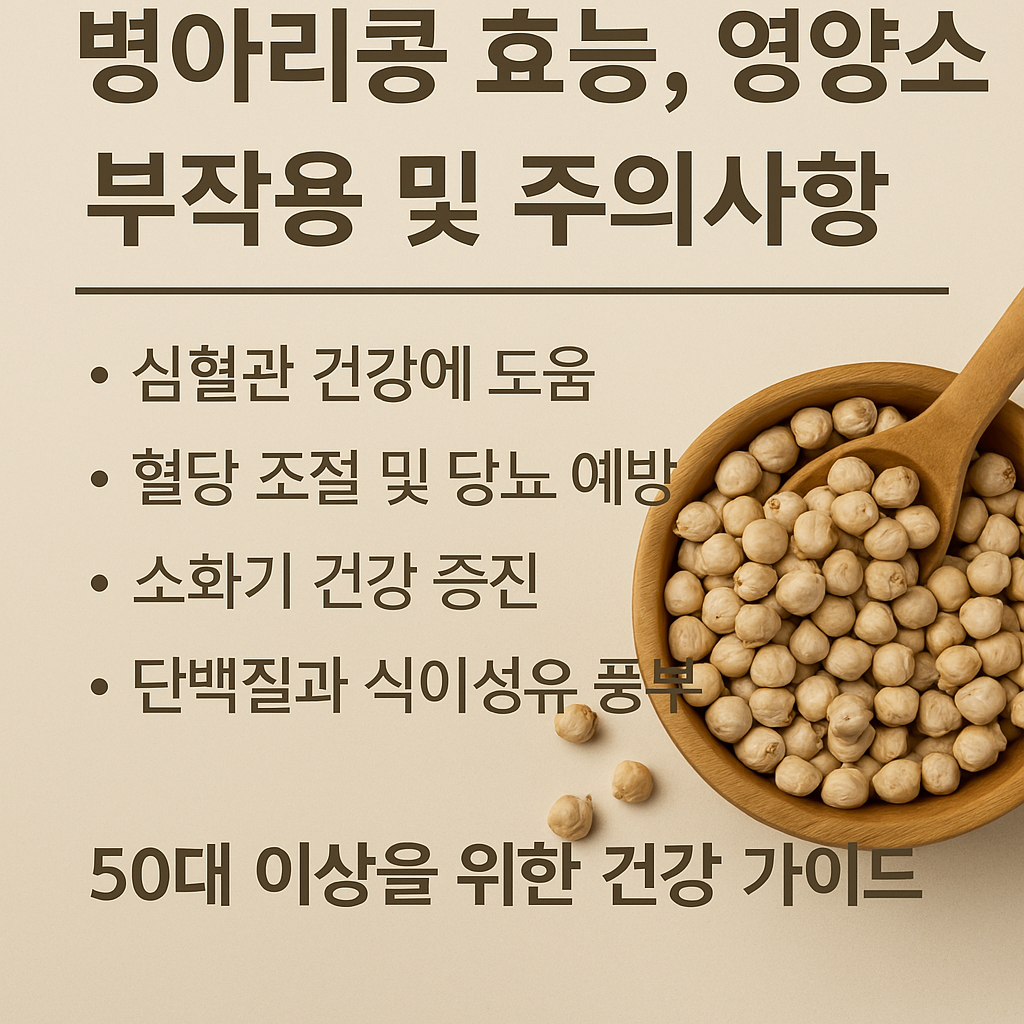 병아리콩은 대부분의 사람에게 안전하지만, 과도하게 섭취하거나 특정 조건에서 부작용이 발생할 수 있습니다. 특히 50대 이상의 분들은 아래와 같은 부작용에 주의해야 합니다: