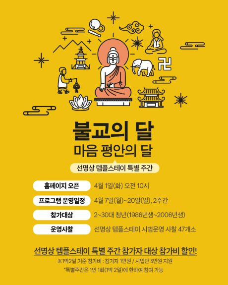 대한불교조계종이 불교의 달을 맞아 청년 세대의 몸과 마음 회복을 위해 이 프로그램을 기획했어요. 참가비 1만원이면 누구나 참여 가능하지만, 특히 20~30대에게 따뜻한 쉼의 기회를 주고자 합니다. 바쁜 일상 속 작은 위로가 필요하다면 딱이죠!