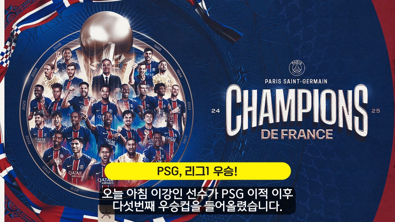 PSG는 2025년 4월 6일, 앙제와의 경기에서 1-0으로 승리하며 정규리그 4연패와 통산 13번째 챔피언 트로피를 확정했습니다. 비록 이강인은 부상으로 경기에 출전하지 못했지만, 그는 PSG에서 5번째 우승 트로피를 들어 올리며 한국 축구의 자랑으로 자리 잡았습니다.