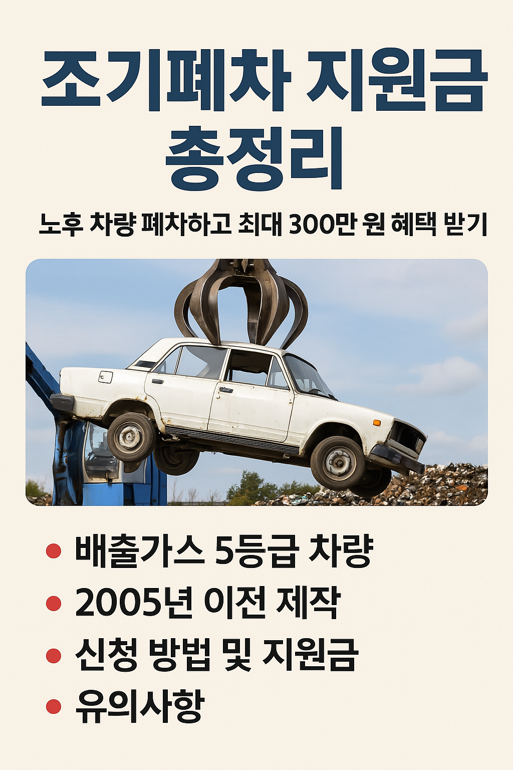 조기폐차 지원금 총정리 | 노후 차량 폐차하고 최대 300만 원 혜택 받기
