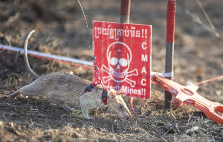 캄보디아는 1998년까지 약 30년간 이어진 내전으로 인해 세계에서 가장 지뢰 피해가 심각한 국가 중 하나입니다. 이 기간 동안 수백만 개의 지뢰와 불발탄이 매설되었고, 현재도 1000㎢ 이상의 국토가 오염된 상태로 추정됩니다. 지뢰로 인해 수만 명이 목숨을 잃었으며, 많은 이들이 팔다리를 잃는 등 피해가 계속되고 있습니다. 로닌과 같은 지뢰탐지 쥐들은 이런 위험 속에서 주민들에게 희망을 주고 있습니다.