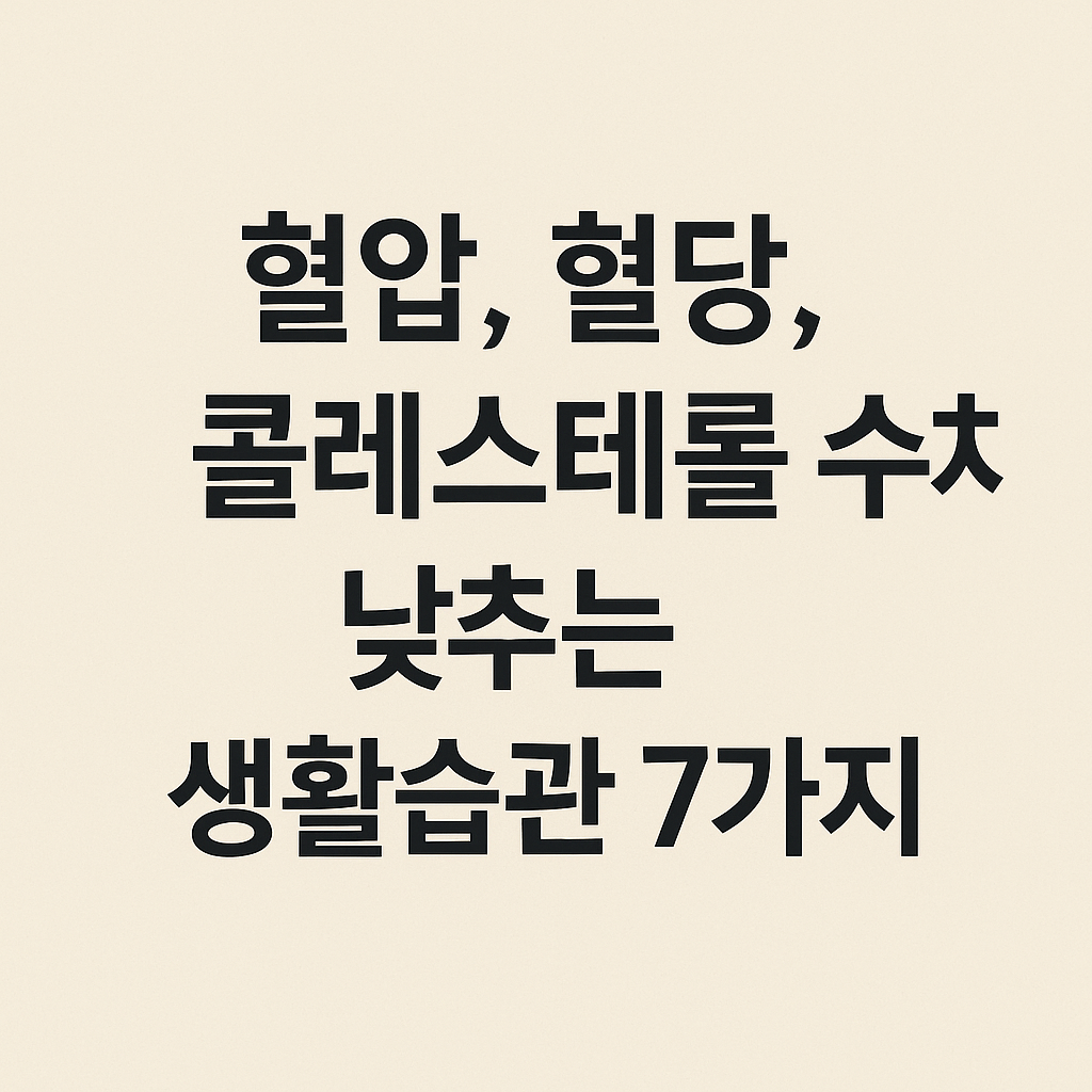 높은 혈압, 혈당, 콜레스테롤은 단순한 숫자가 아닌 건강 경고등입니다. 생활 습관을 하나씩 바꿔 나가면 수치는 자연스럽게 개선됩니다. 약보다 중요한 건 꾸준한 실천입니다. 오늘부터 하나씩 실천해보세요.