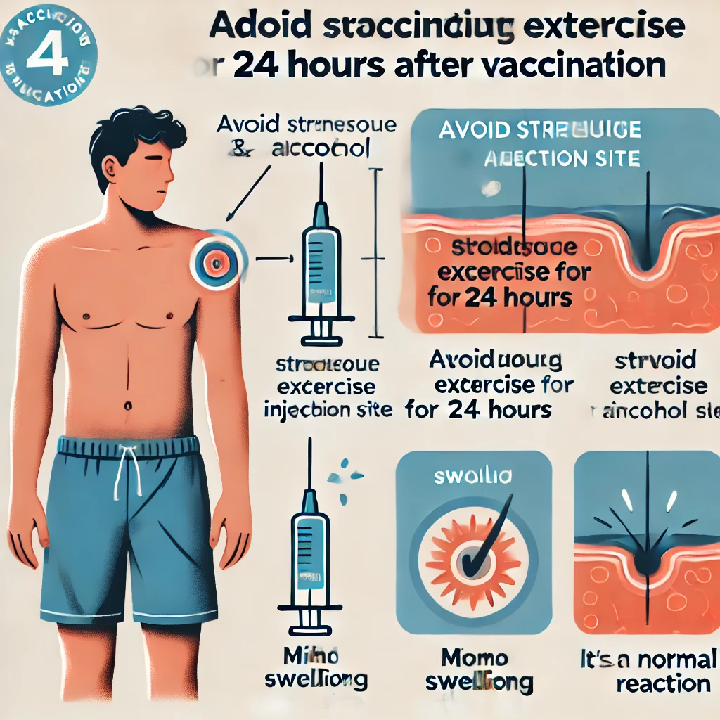 - 접종 후 24시간 동안 과격한 운동 및 음주 금지