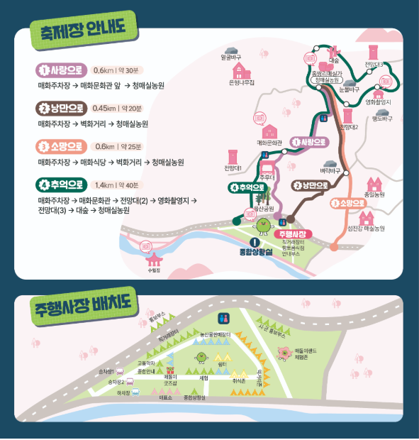 - 주차장 운영 – 임시주차장 마련, 축제장까지 셔틀버스 연결