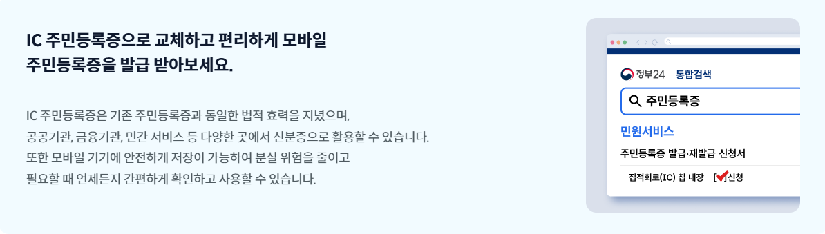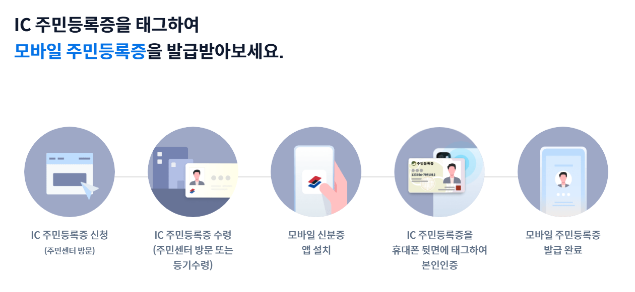 3. 주민센터 방문 후 IC 주민등록증 발급 신청(최초 1회 대면 인증).