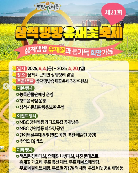 - 삼척 맹방유채꽃축제 (강원 삼척시)