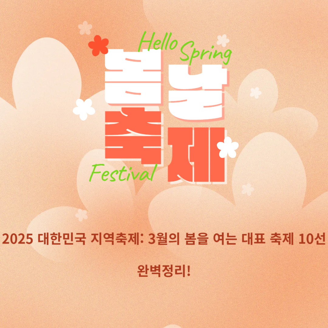 2025년 3월, 대한민국의 봄을 여는 지역축제 10선으로 특별한 여행을 계획해보세요! 더 많은 정보는 문화체육관광부 사이트에서 확인 가능합니다. 이번 봄, 어디로 떠날까요?