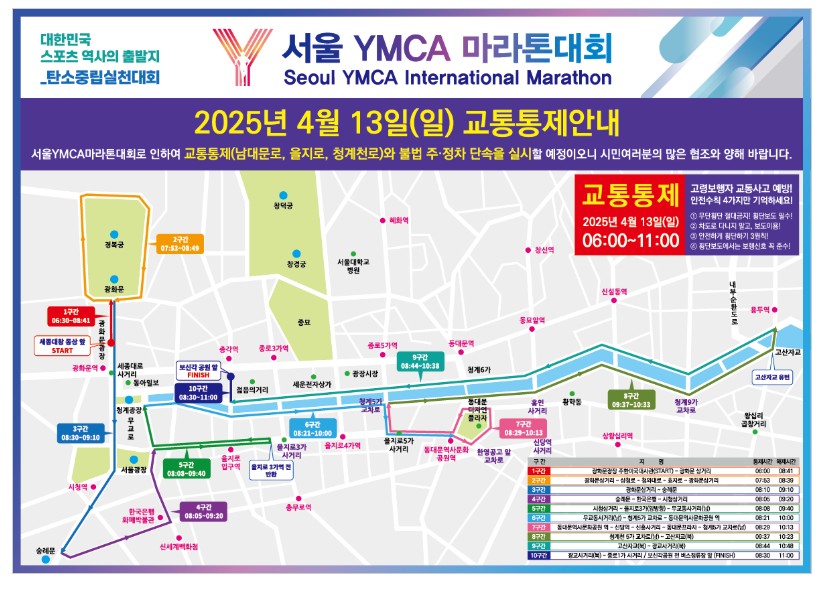 - 교통 통제: 2025년 4월 13일 오전 6시 ~ 오후 1시, 광화문 일대 및 코스 주변 도로 통제.