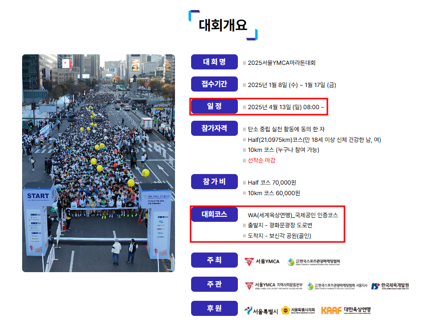 2025 서울 YMCA 마라톤대회 참가신청 일정 총정리 - 광화문 광장