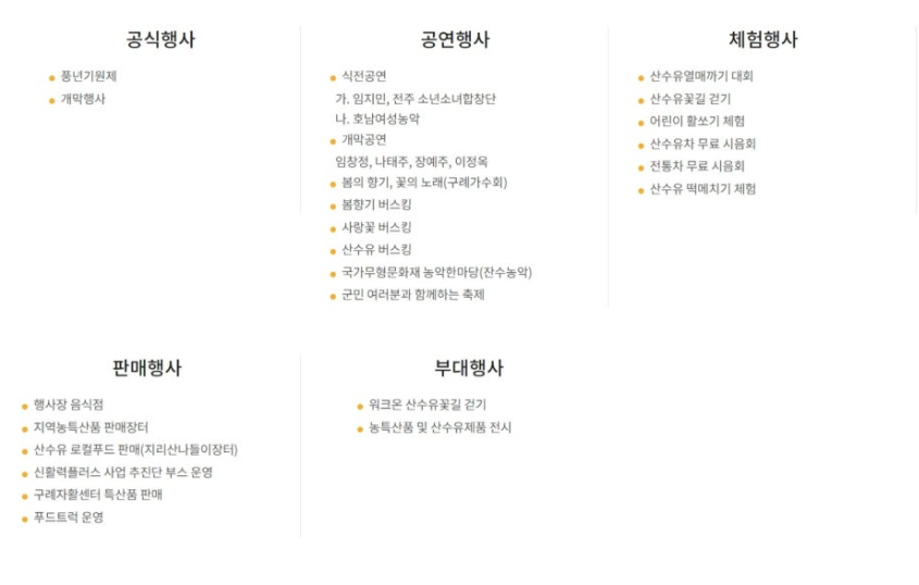 - 산수유꽃길 걷기: 약 2.5km 코스, 완료 시 산수유 건피 증정.