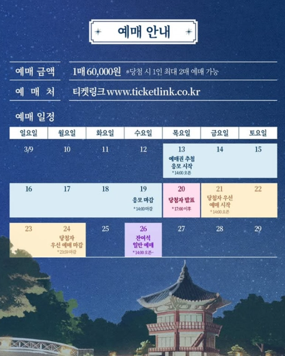 - 방법: 티켓링크(www.ticketlink.co.kr)에서 응모.