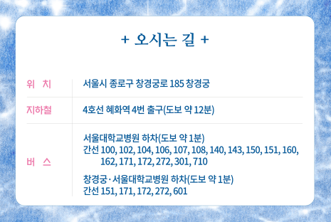 - 입장료: 창경궁 입장권(성인 1,000원) 구매 시 무료 관람.