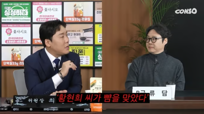 황현희 뺨 때린 사건에 대해서는 "남자 후배들은 엎드려뻗쳐를 하고 '몇 대 맞을래?' 하고 끝냈는데, 현희가 허리가 안 좋다고 해서 맞을 수 없다고 하길래 뺨을 때린 게 맞다"고 인정했습니다. 하지만 그는 이후 상황을 더 설명하며 억울함을 호소했어요. "그 후 7층으로 올라가서 애들과 술을 마셨고, 특히 현희는 저희 집까지 와서 양주 한 병을 마시고 헤어졌다"고 덧붙였습니다. 김승진이 "양주 먹고 또 뺨을 때렸냐"고 묻자 류담은 "안 했다"고 부인했어요.